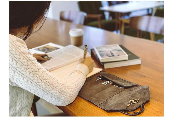また、革のロールペンケースは、ペンをまとめて収納することができ、机やカバンの中をスッキリと整理できます。