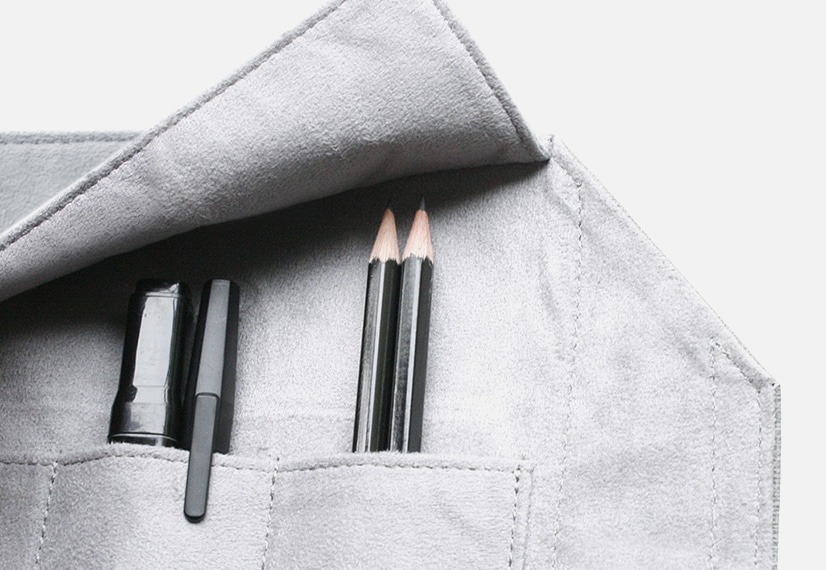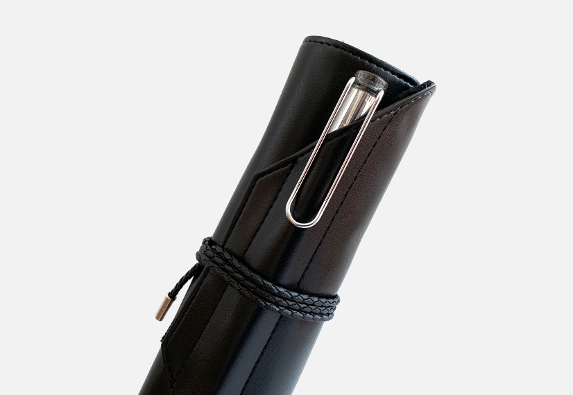 思いついたアイディアをすぐに記録できるよう、アウトポケットも付いています。紐をほどいてペンを取り出す手間が省けるので、何か浮かんだその瞬間に1秒でペンを抜き、使用することができます。今思いついたアイディアは今書き溜めないとあとで思い出すことはできないからこそ、このアウトポケットが『書く』をサポートします。
