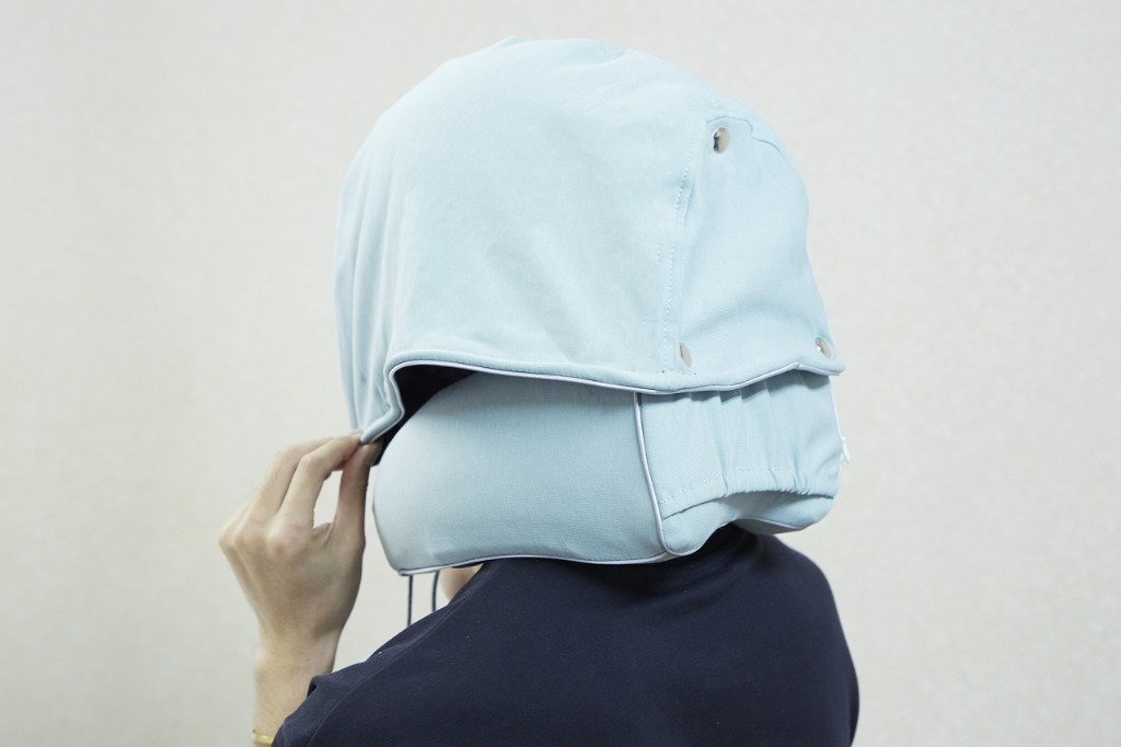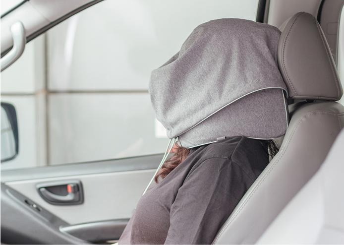 仮眠専用のフード付きネックピロー、『フードピロー』。